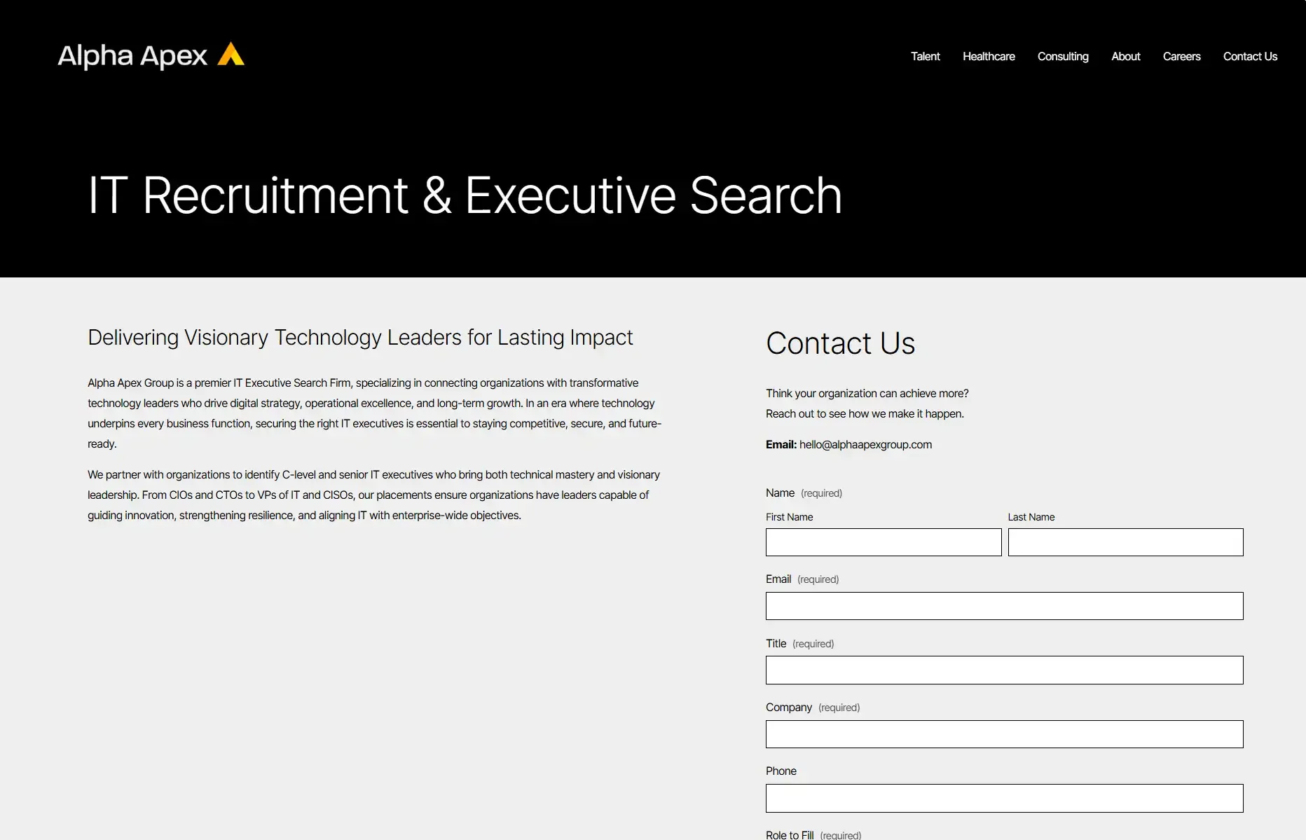 If you’re looking for a partner that nails all of those, Alpha Apex Group (AAG) stands out. We combine lightning-fast placements with rigorous screening, executive-level search savvy, and a tight understanding of modern tech organizations, especially for roles like CTO and senior engineering leadership.