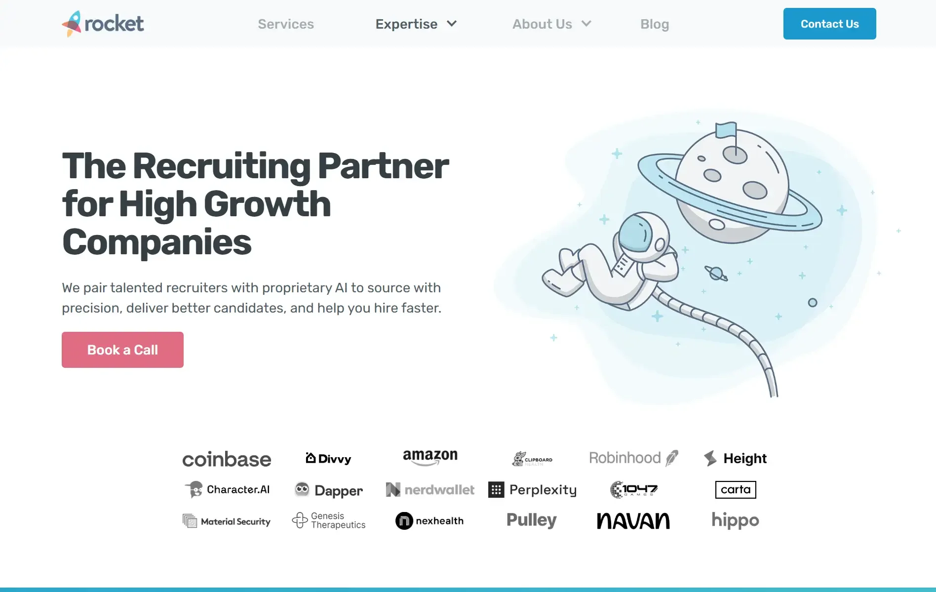 Rocket is a modern tech-powered recruitment firm based in San Francisco since 2017. They stand out because they combine proprietary AI with deeply experienced recruiters, many of whom come from executive and operational backgrounds. And they deliver highly precise hiring support for high-growth companies, startups, and venture-backed firms.