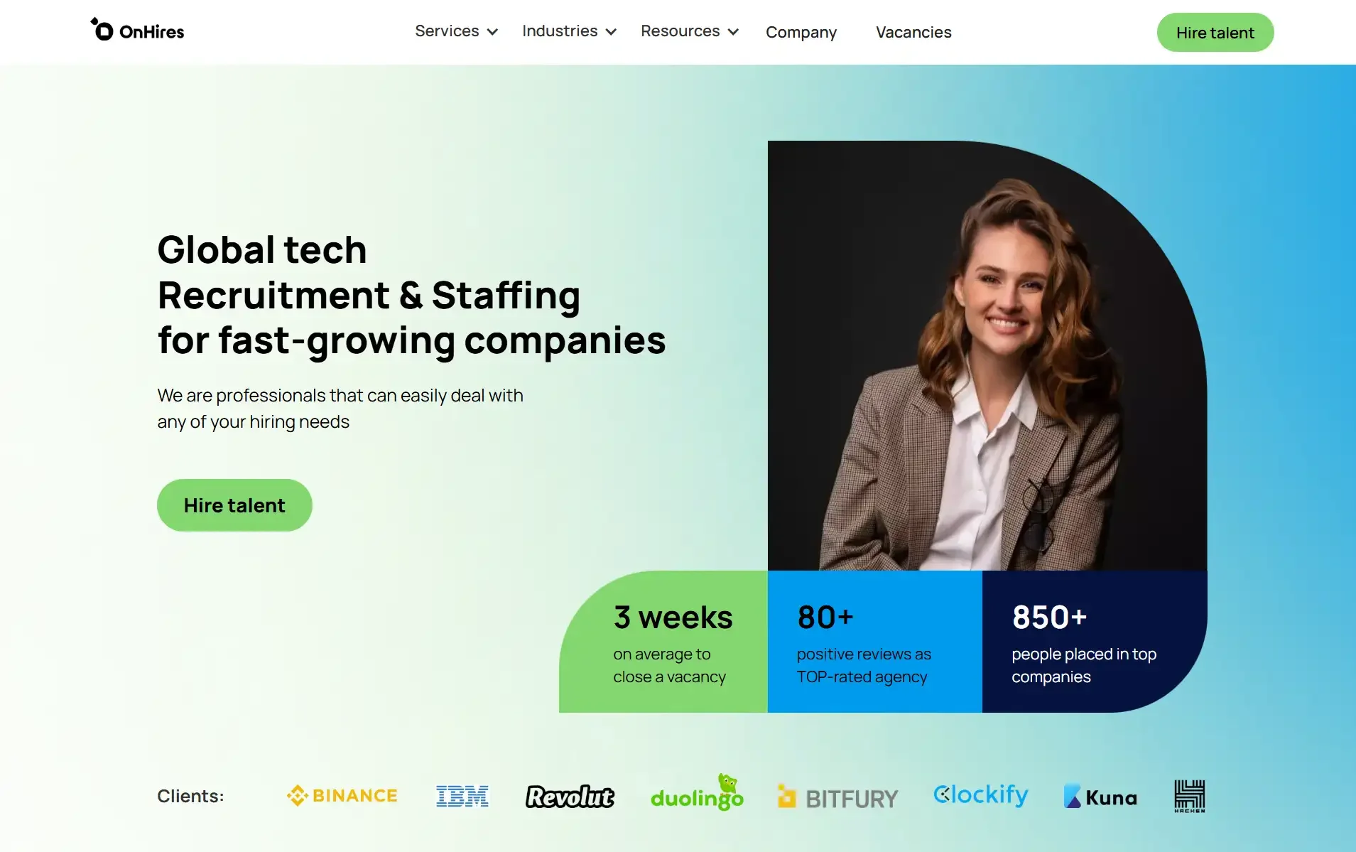 OnHires is a global, tech-focused recruitment and staffing agency, founded in 2017 and based in New York, with offices in Estonia, Ukraine, and the UK. They offer fast, full-cycle hiring solutions to scale tech teams worldwide, combining speed with expertise.
