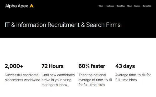 Alpha Apex Group is built for fast-scaling teams that cannot afford slow hiring cycles. The firm specializes in IT and information recruitment. It connects you with pre-vetted engineers and executives across the globe.