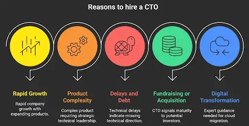 You’re preparing for fundraising or acquisition: Investors will want to see a strong technology org, and having a CTO on board signals maturity.
