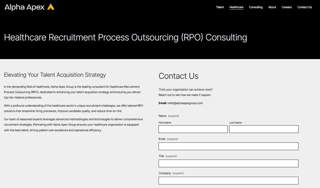Alpha Apex Group - Alpha Apex Group specializes in Healthcare RPO, streamlining hiring processes and improving candidate quality for medical institutions.