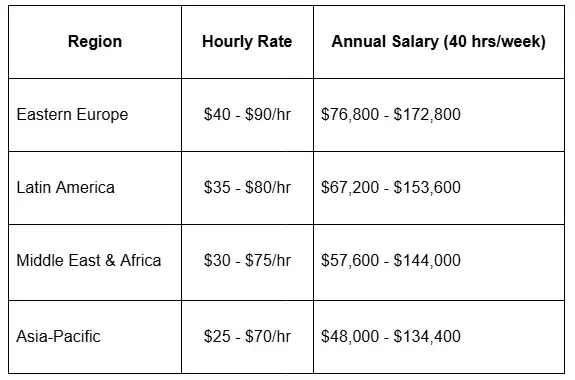 This is why many New York teams look elsewhere for cost-effective, high-skill engineering support. And according to research from AALPHA, these are the typical offshore ranges you can expect: