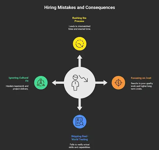 Avoid rushing, lowballing, or skipping interviews. Bad hires are expensive.