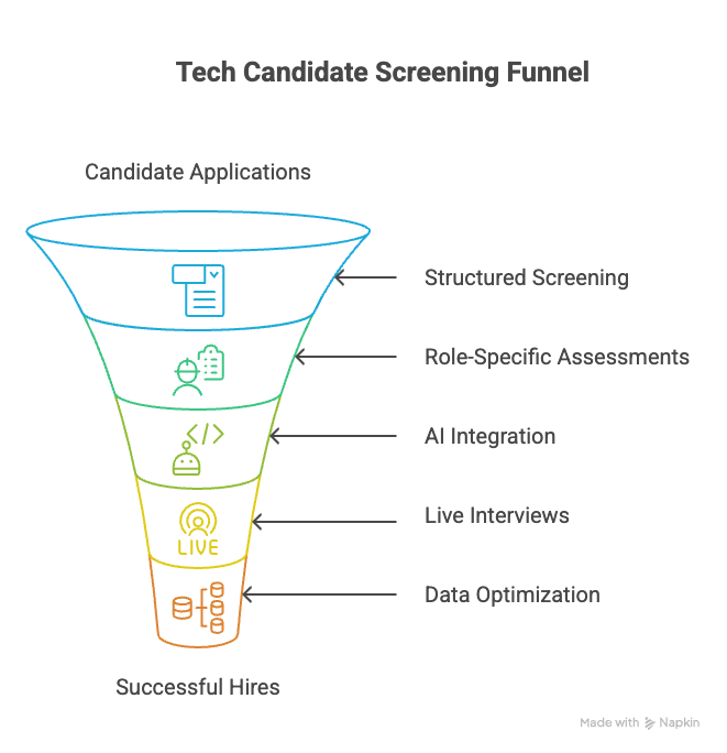 Design assessments based on tasks candidates would face day-to-day (e.g., debugging a microservice, building UI components, optimizing queries).