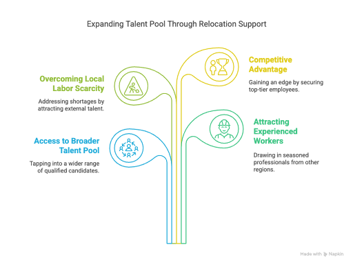 Relocation support also boosts employee retention. Workers who receive help settling into a new city are more likely to feel supported by their employer, which can lead to stronger long-term loyalty. For construction firms facing urgent project demands, this is a practical and targeted fix that expands your hiring reach and helps stabilize your construction workforce.