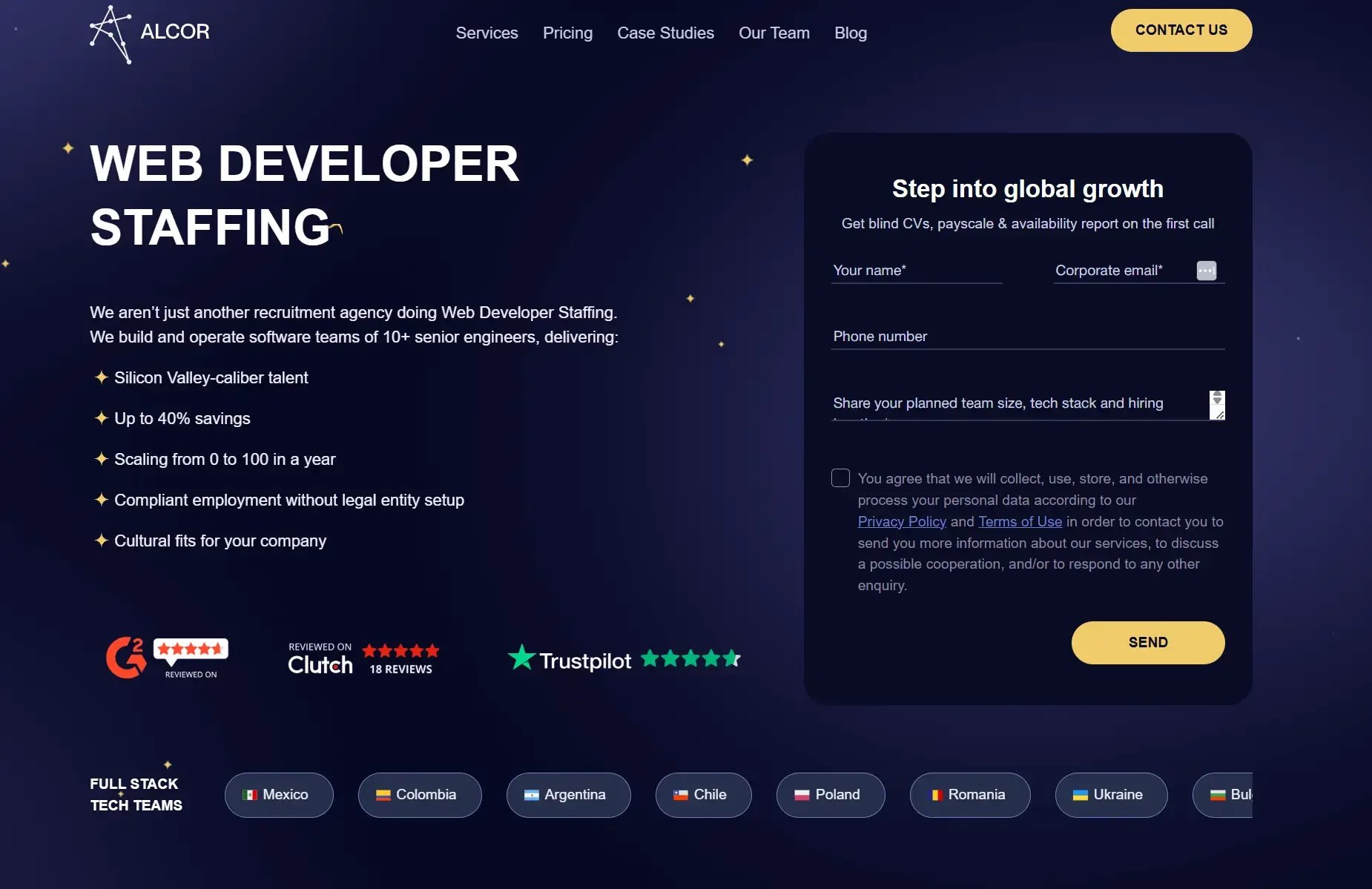 Alcor BPO is a global IT recruitment and operations partner that helps companies build high-performing software engineering and web development teams across Latin America and Eastern Europe.
