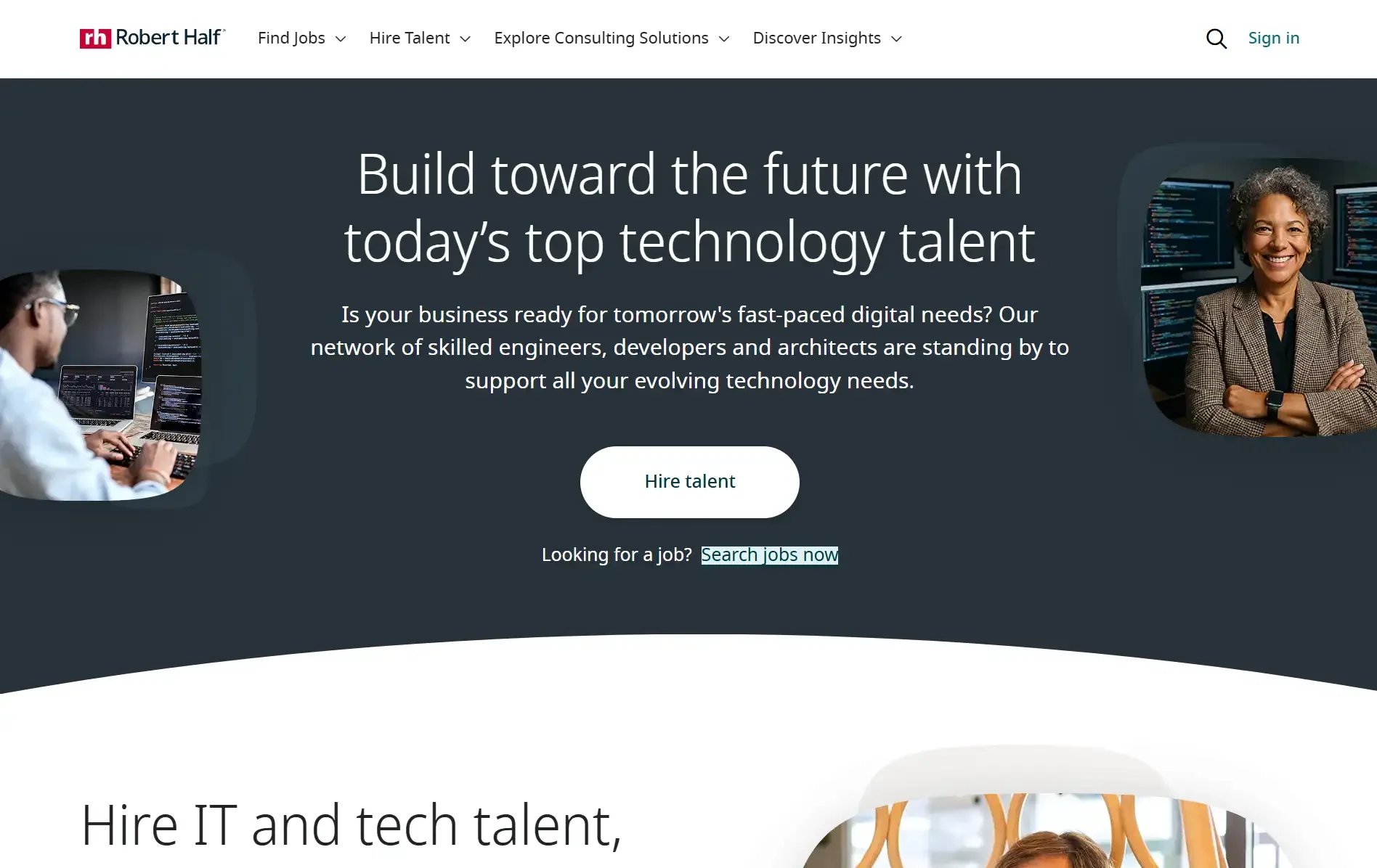 Robert Half is the OG in staffing, specializing in technology and IT roles with unmatched scale and experience. Their tech arm taps into a massive network of 300+ global offices spanning over 17 countries (according to their website), and leans on decades of placement data powered by AI.