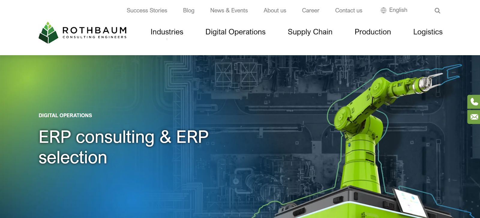 Rothbaum Consulting Engineers provides independent ERP advisory services covering selection, implementation, and organizational development. Its work starts with a detailed review of business processes and system landscapes before shortlisting vendors.