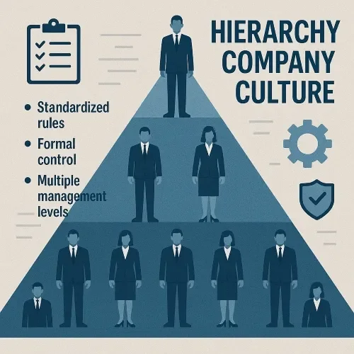 This is the traditional corporate culture many picture, organized through standardized rules and formal control. Clear procedures and multiple management levels guide how work gets done. The focus is stability, efficiency, and risk management.