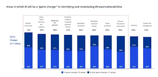 Leaders see this momentum. At least 60% of SOC leaders call AI a game changer across core functions like the ones shown below: