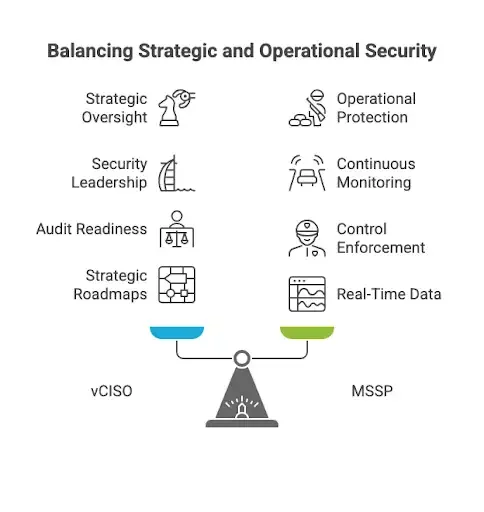 If you need leadership and strategy, start with a vCISO. If you need 24/7 monitoring and rapid response, lean on an MSSP. If you need both, connect governance to operations with a shared plan and a steady review cadence.