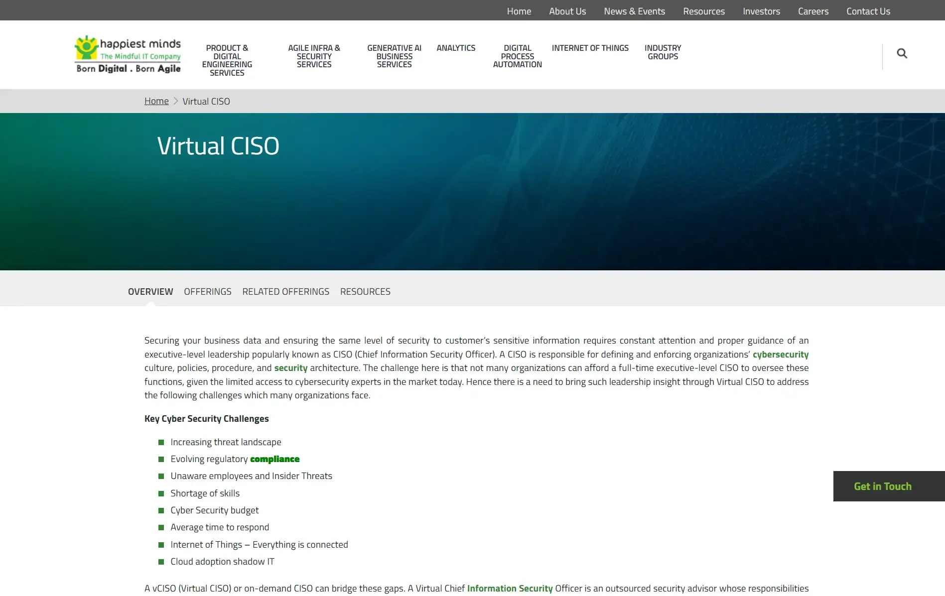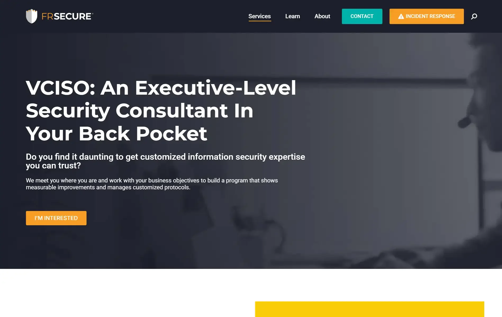 They help their clients define and drive long‑term strategy (risk posture, governance, compliance) while also setting up the practical programs needed to execute. They customize their approach depending on your organizational maturity and adjust their level of involvement as your risk profile or compliance demands change.