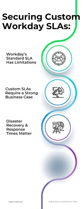 Securing custom Service Level Agreements (SLAs) for critical Workday functions will make sure that the platform's performance aligns with your organization's specific operational requirements.